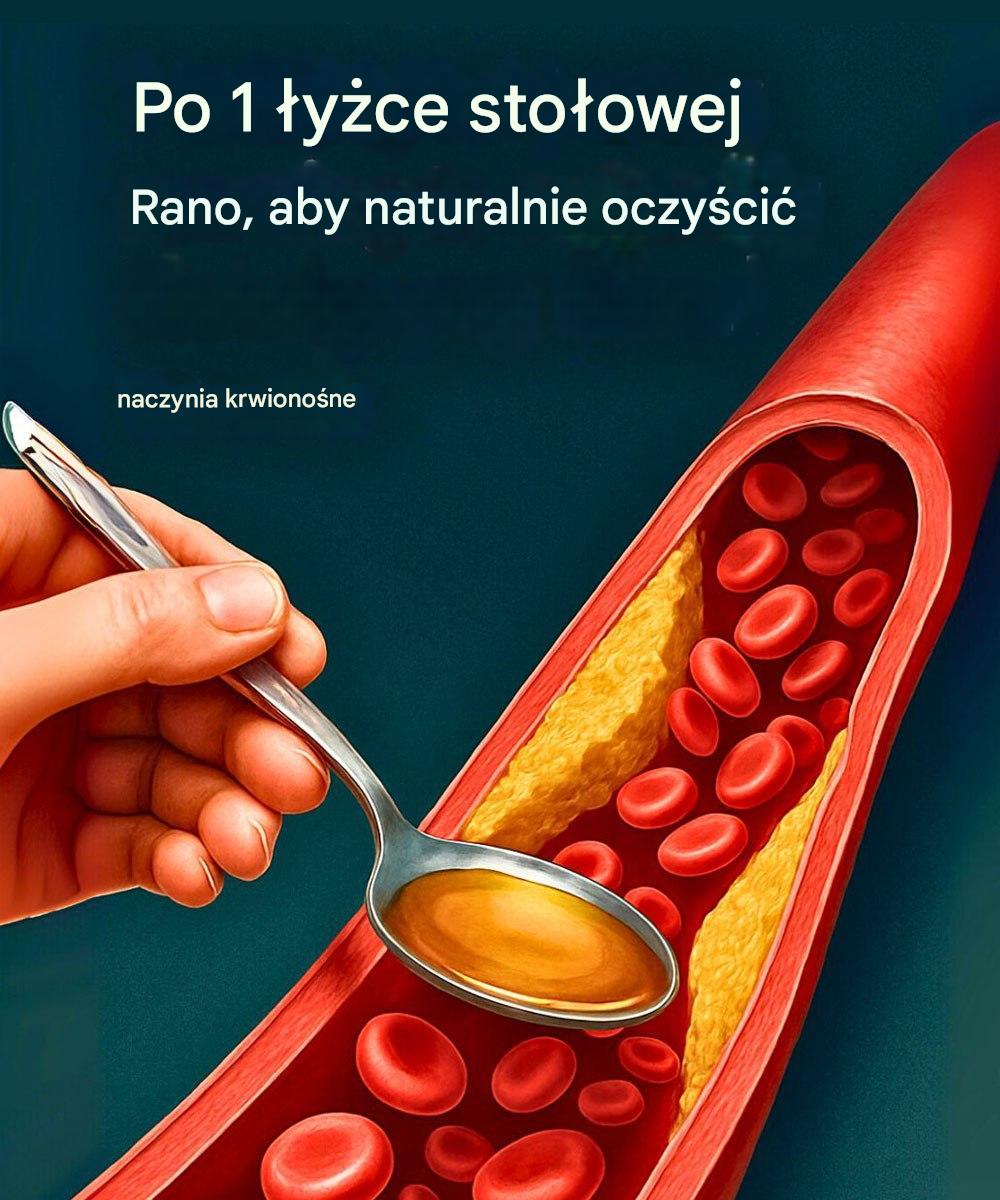 – Dwie łyżki miodu: Miód zmniejsza obciążenie naczyń krwionośnych, co jest główną przyczyną miażdżycy. Pomaga oczyścić naczynia krwionośne i obniżyć poziom cholesterolu.