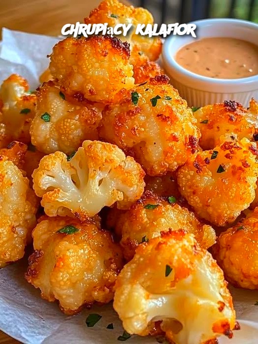 Składniki (na 4 porcje):  1 średni kalafior (pokrojony na różyczki)  1/2 szklanki mleka  1 jajko  1/2 szklanki mąki pszennej  1/2 szklanki startego parmezanu  1/2 łyżeczki soli  1/2 łyżeczki papryki ostrej lub słodkiej  1/2 łyżeczki czosnku granulowanego  Olej do smażenia  Sposób przygotowania: Przepis jest kontynuowany na następnej stronie