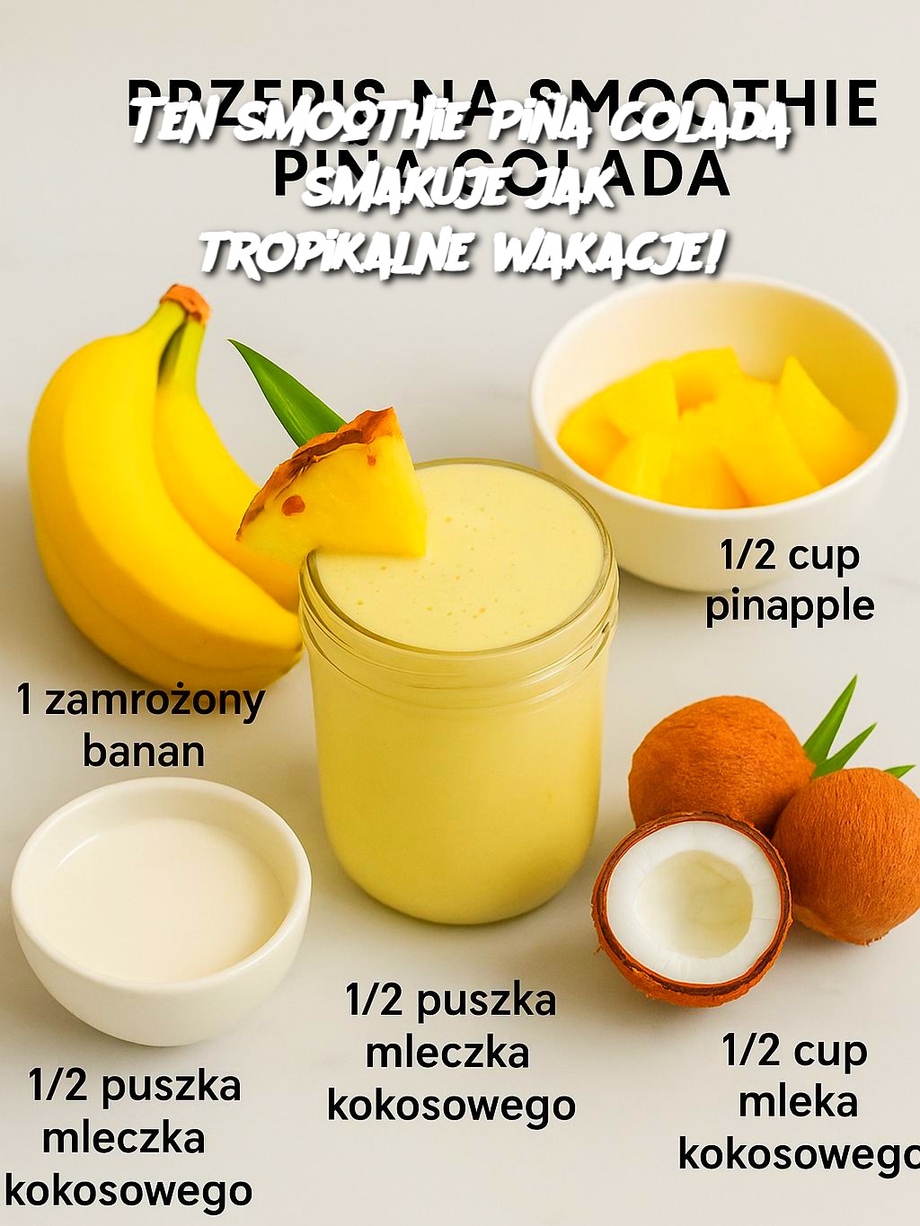 🧉 Jak przygotować (1 porcja): 1 zamrożony banan ½ szklanki pokrojonego ananasa ½ szklanki kawałków kokosa (lub wiórków) ½ puszki mleczka kokosowego (ok. 100 ml) ½ szklanki mleka kokosowego do blendowania Sposób przygotowania: ⿡ Wrzuć wszystkie składniki do blendera ⿢ Blenduj, aż uzyskasz gładką i kremową konsystencję ⿣ Przelej do szklanki, udekoruj kawałkiem ananasa i … Read more