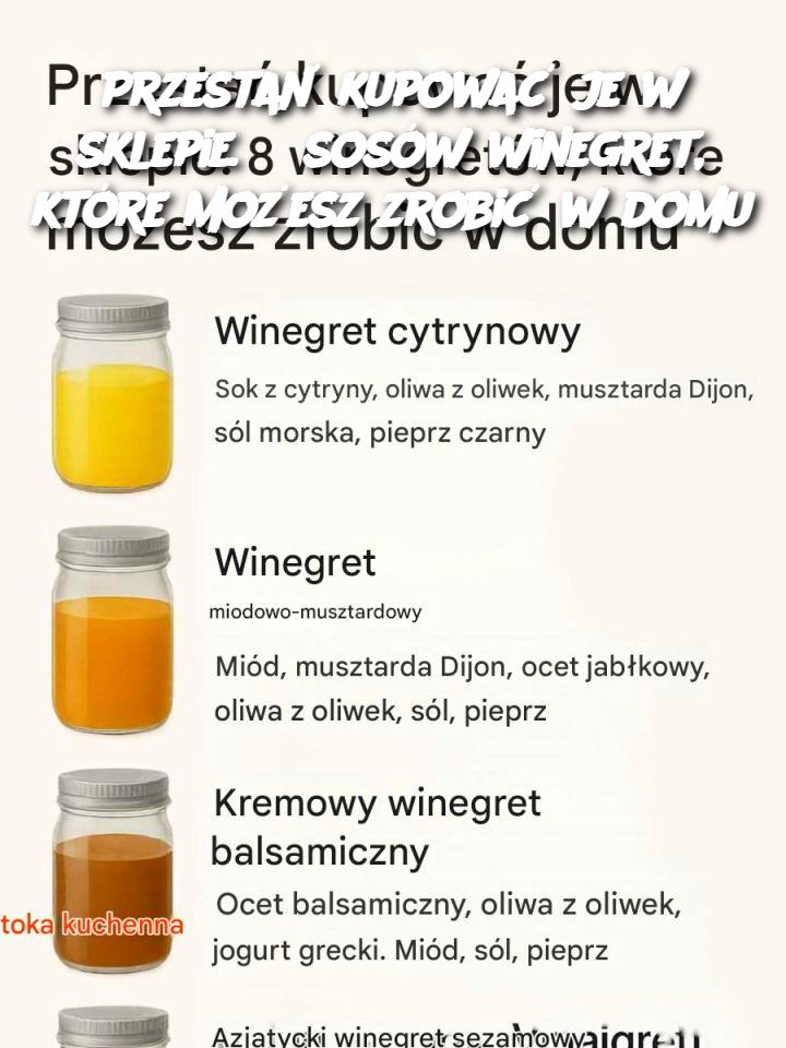 Przestań kupować je w sklepie. 8 sosów winegret, które możesz zrobić w domu