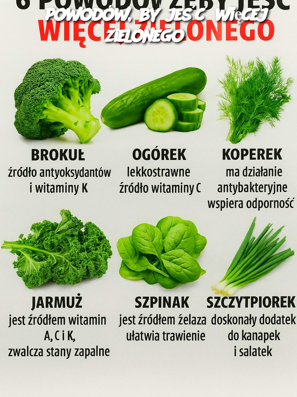 🥦 Brokuły To intensywnie zielone warzywo krzyżowe jest pełne witamin A, C i E. Co najważniejsze, wzmacnia układ odpornościowy i pomaga organizmowi zwalczać choroby. Najlepiej spożywać je gotowane na parze, pieczone lub na surowo – wtedy dają najwięcej korzyści. 🥒 Ogórek W ponad 95% składa się z wody, dzięki czemu jest doskonałym źródłem nawodnienia. Dodatkowo … Read more