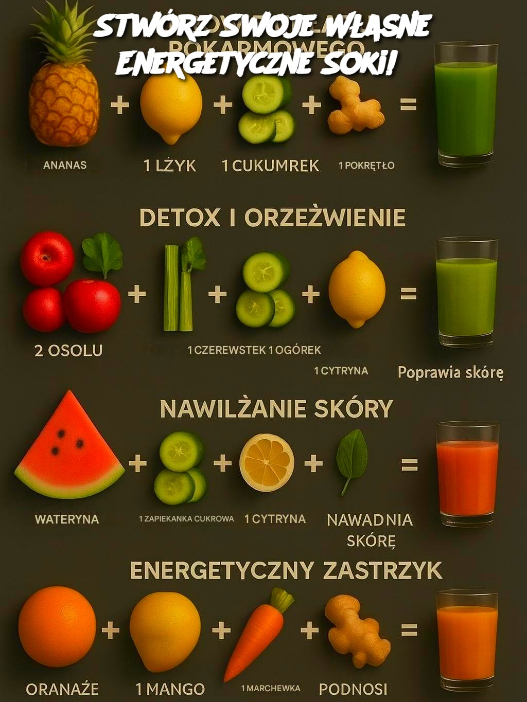 🌿 DLA ZDROWIA UKŁADU TRAWIENNEGO (Ulga dla brzucha!) 1 ananas + 1 cytryna + 1 ogórek + 1 kawałek imbiru 🍍 Bromelaina z ananasa + kojący imbir = szczęśliwe trawienie! 💧 NA DETOKS I ORZEŹWIENIE (Pełne oczyszczenie!) 2 jabłka + 1 łodyga selera naciowego + 1 ogórek + 1 cytryna 🍋 Nawilżające, oczyszczające i idealne … Read more