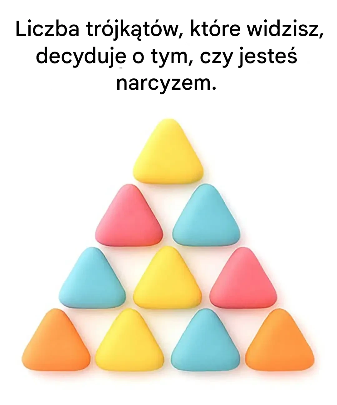 Na pierwszy rzut oka obraz wydaje się niewinny: kilka kolorowych trójkątów ułożonych jak dziecięca układanka geometryczna. Ale gdy przyjrzeć się bliżej, prostota staje się niewyraźna. Niektórzy liczą 9, inni 13, a jeszcze inni ponad 20. A co, gdyby ta wizualna łamigłówka nie była tylko kwestią matematyki… ale psychologii?