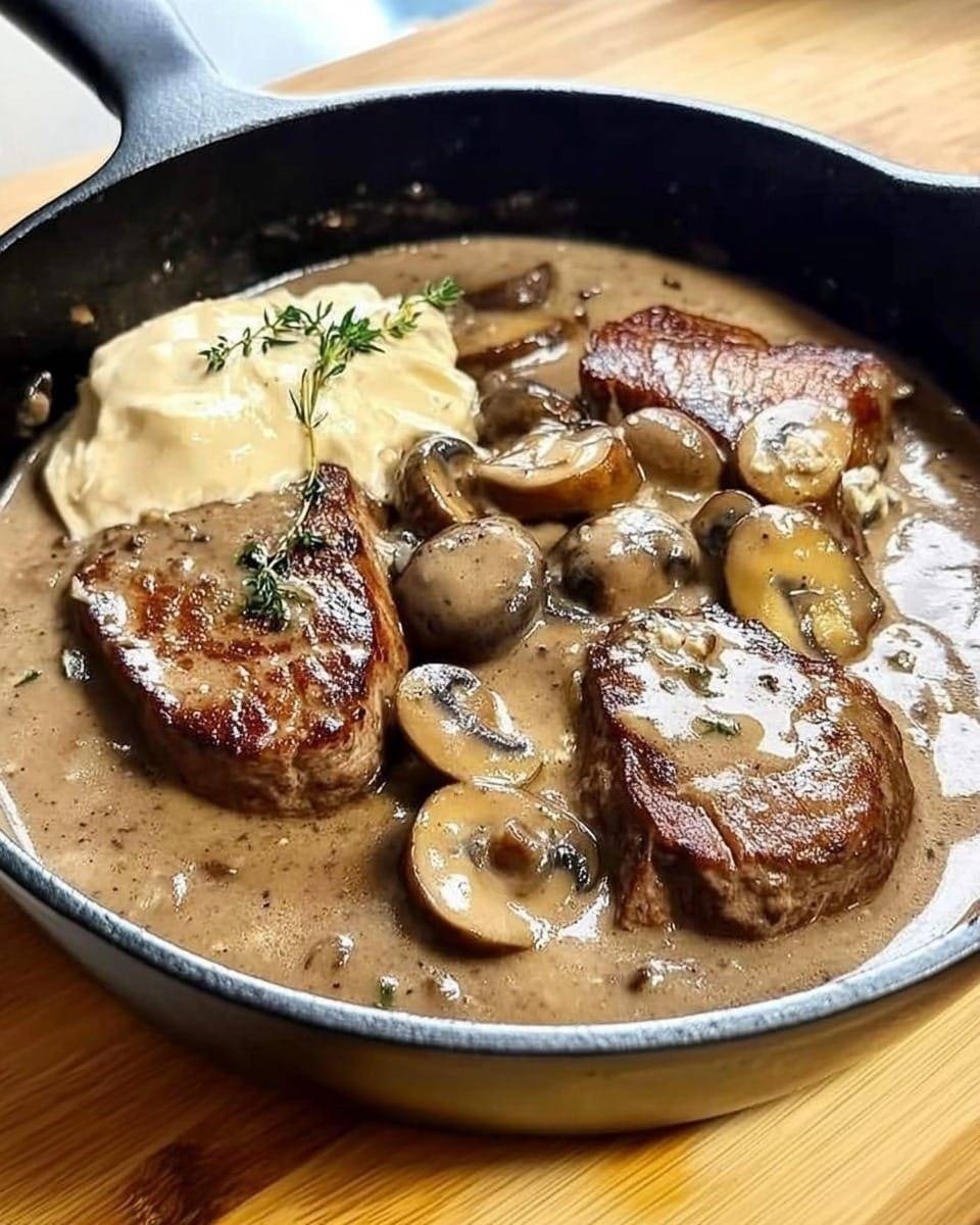 Kompletny przepis na medaliony wieprzowe ze śmietaną i grzybami,