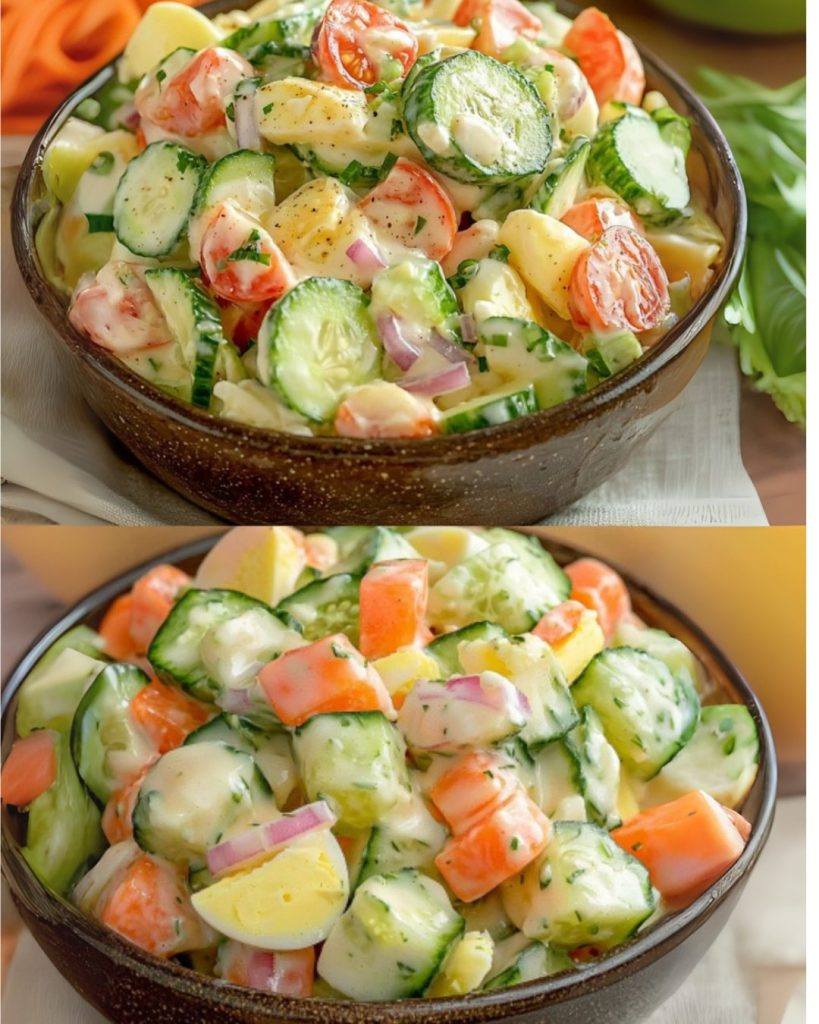 Świeża i chrupiąca sałatka ogórkowa Składniki dla 4 osób: