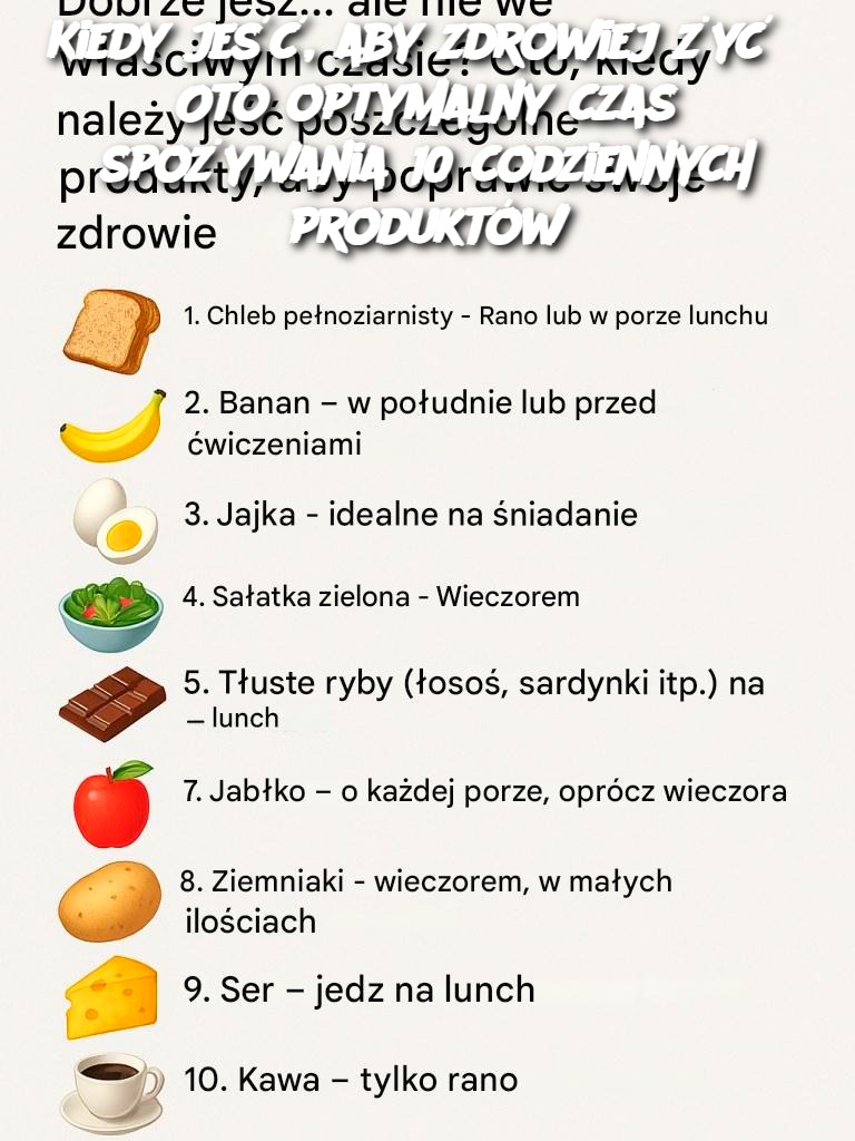 Kiedy jeść, aby zdrowiej żyć? Oto optymalny czas spożywania 10 codziennych produktów
